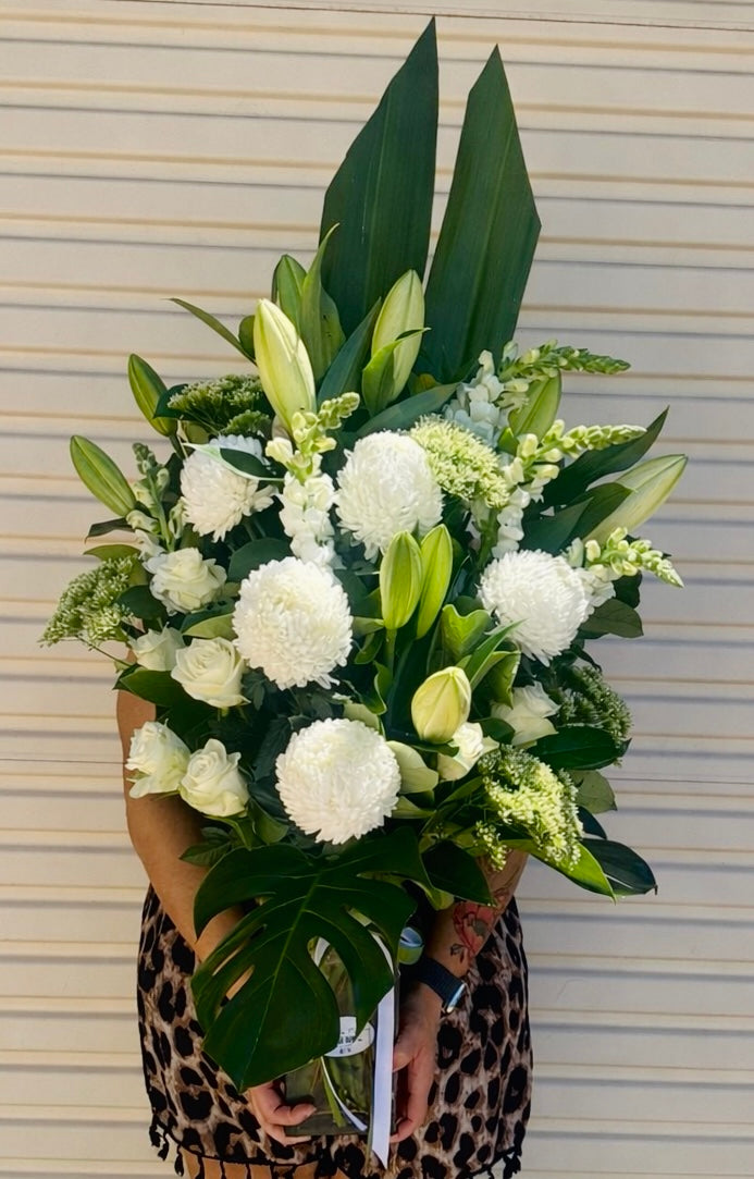 Perfect for any occasion, from heartfelt sympathy and meaningful celebrations to sophisticated home décor and grand gestures of love, this arrangement speaks with grace, comfort, and class.
